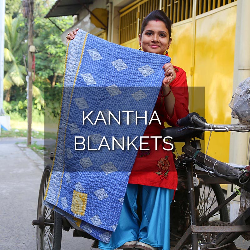 Kantha is a traditional stitch done in West Bengal where line after line of thread is stitched across the length of a recycled saree material. Our Kantha stitched blankets are...