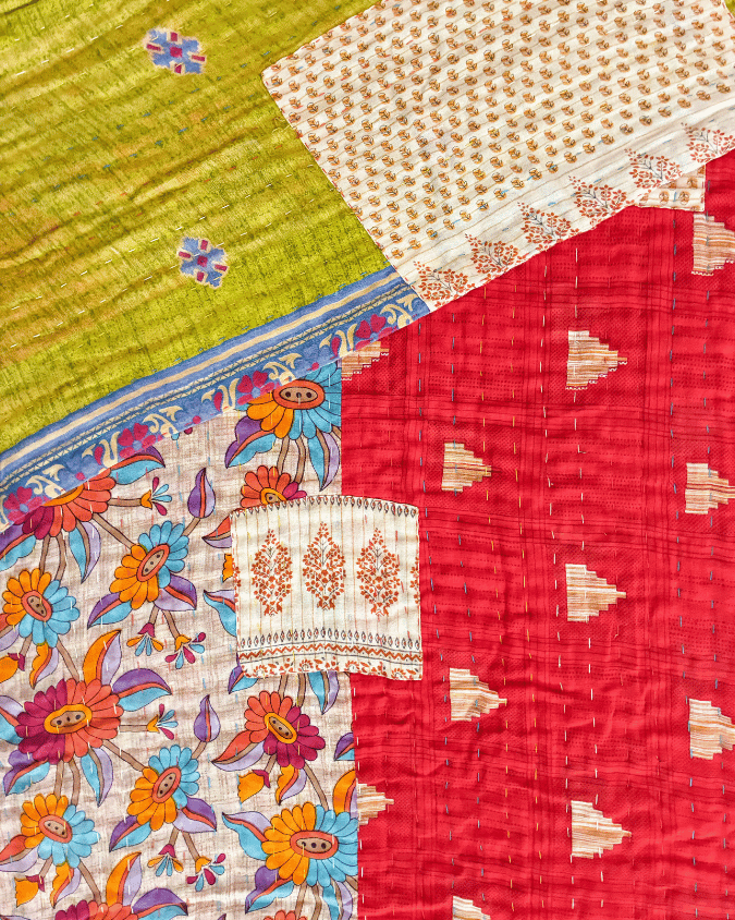 Kantha is a traditional stitch done in West Bengal where line after line of thread is stitched across the length of a recycled saree material. Our Kantha Quilts are 6...
