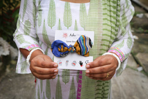 Give your style a unique twist with our fair trade, handmade recycled saree knot headbands! Featuring upcycled saree material, it is both beautiful and sustainable. Dress up your hair with...