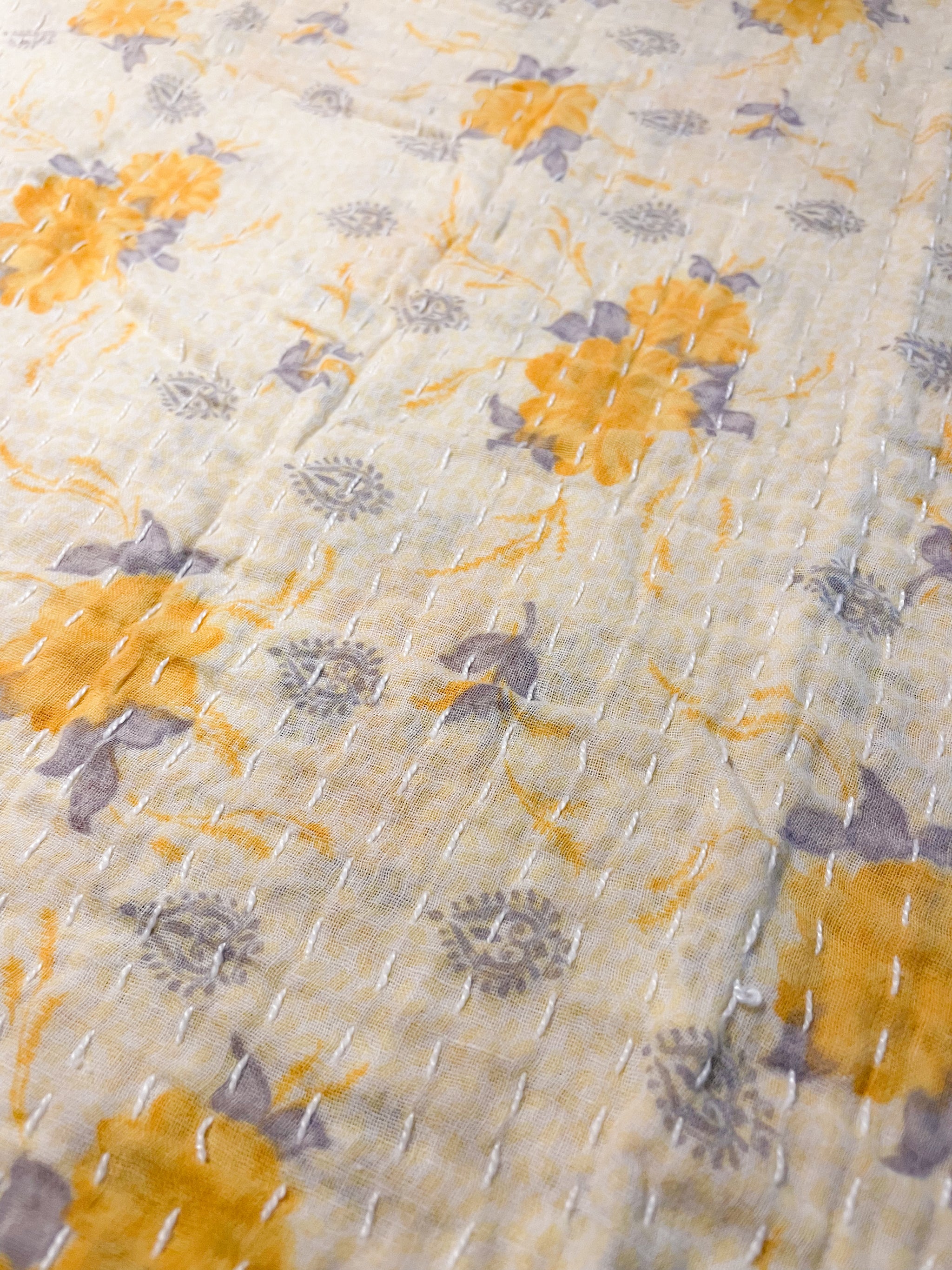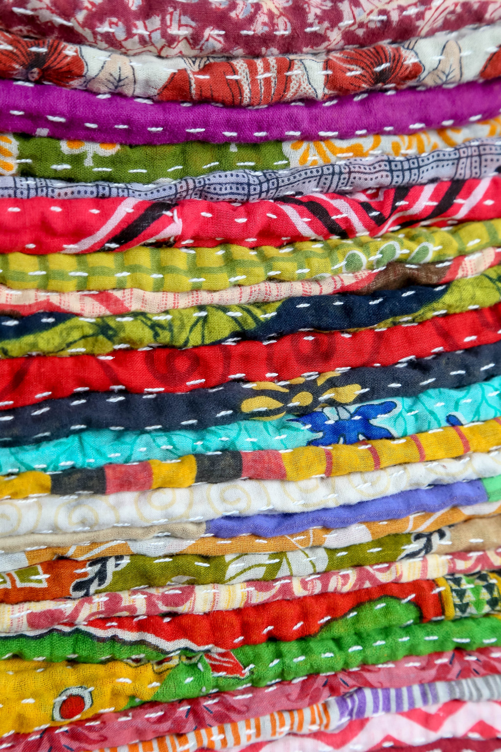 Our assorted raw Kantha Fabric is 3 layers of recycled saree fabric hand kantha stitched together! One side is patched and the opposite side is untouched with holes, stains and...