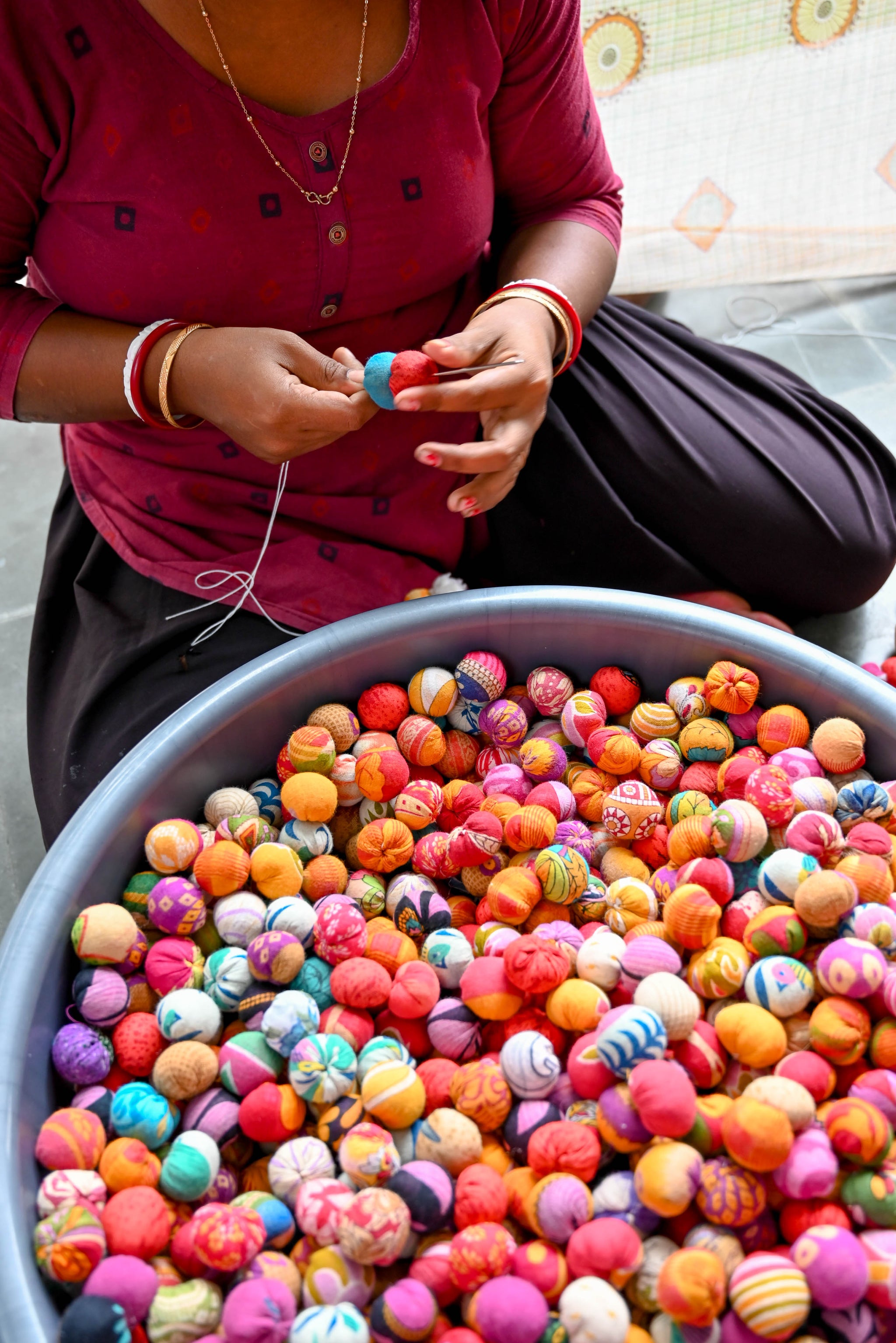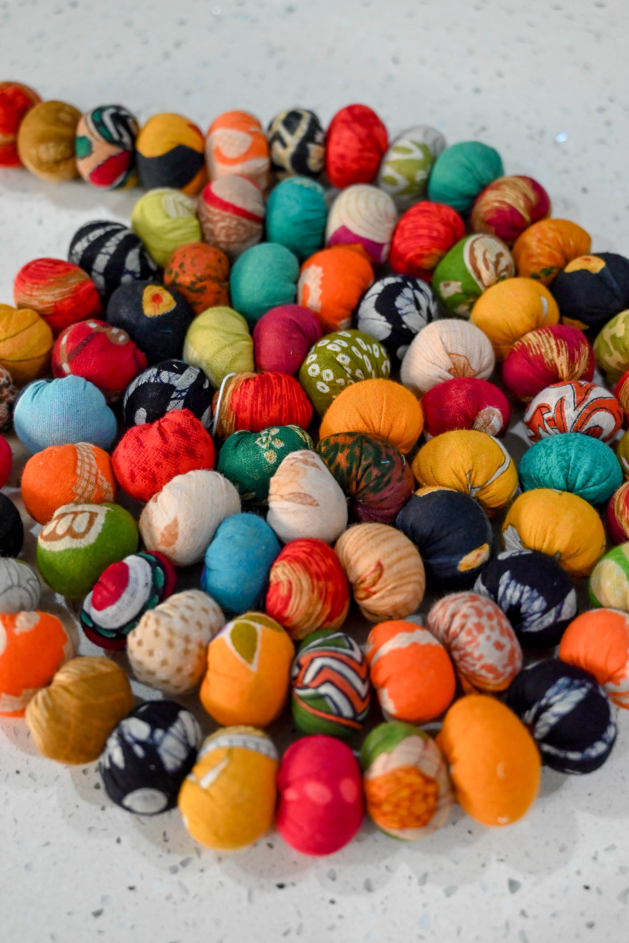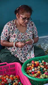 Add a vibrant splash of color to any space with our assorted Saree Bead Bag! Each bag is filled with 45 assorted beads, made from hand cut and stitched recycled...