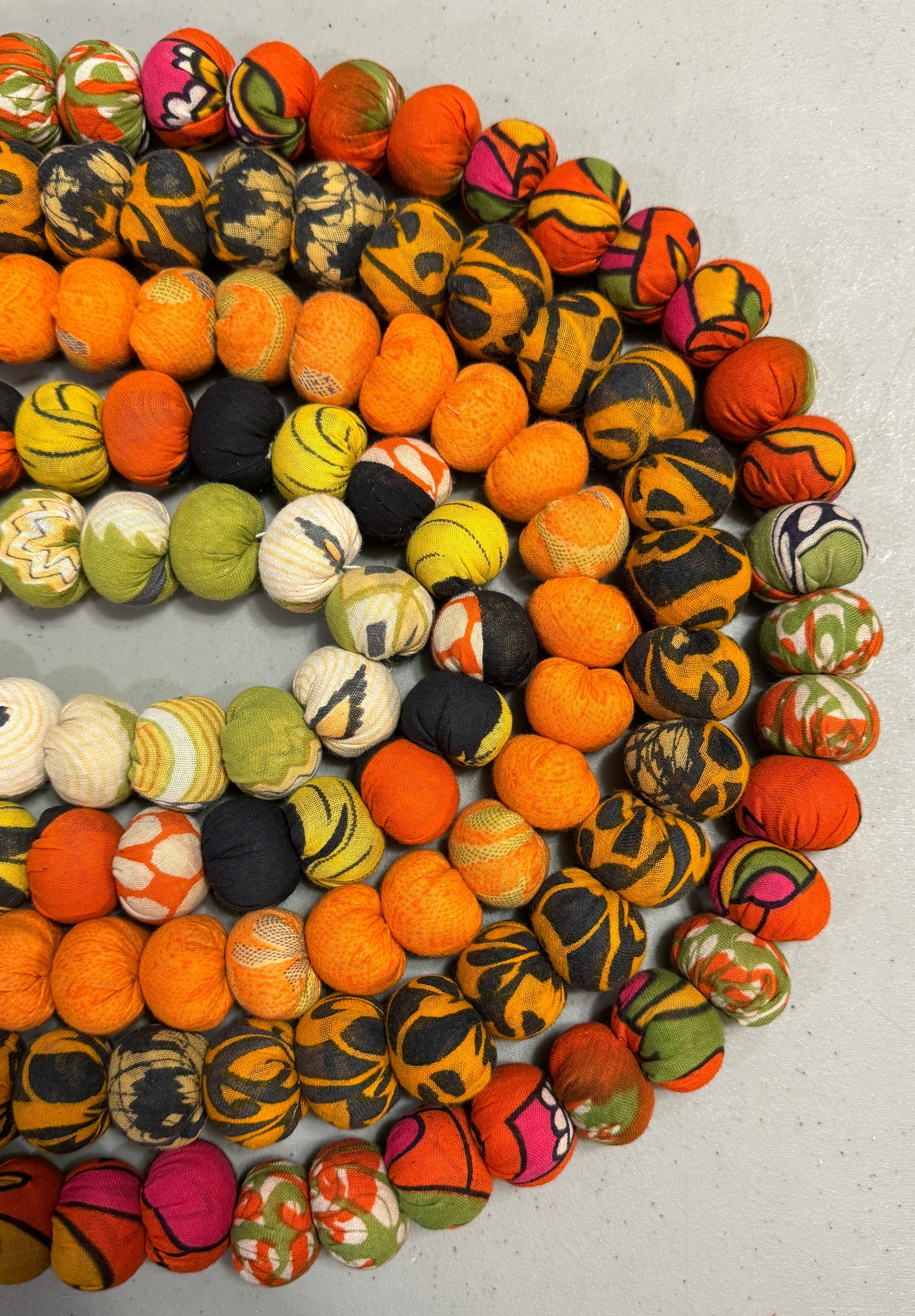 Warm up your space with our assorted Fall garlands. From the start our artisans cut recycled sarees and hand stitch them bead by bead, making each one unique and eco-friendly....