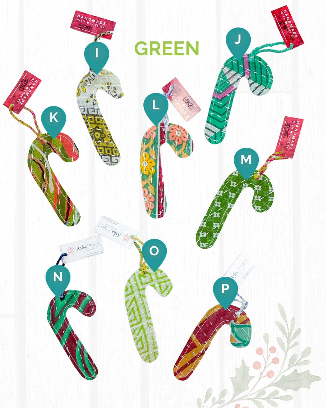 Kantha Christmas Ornaments | Candy Cane