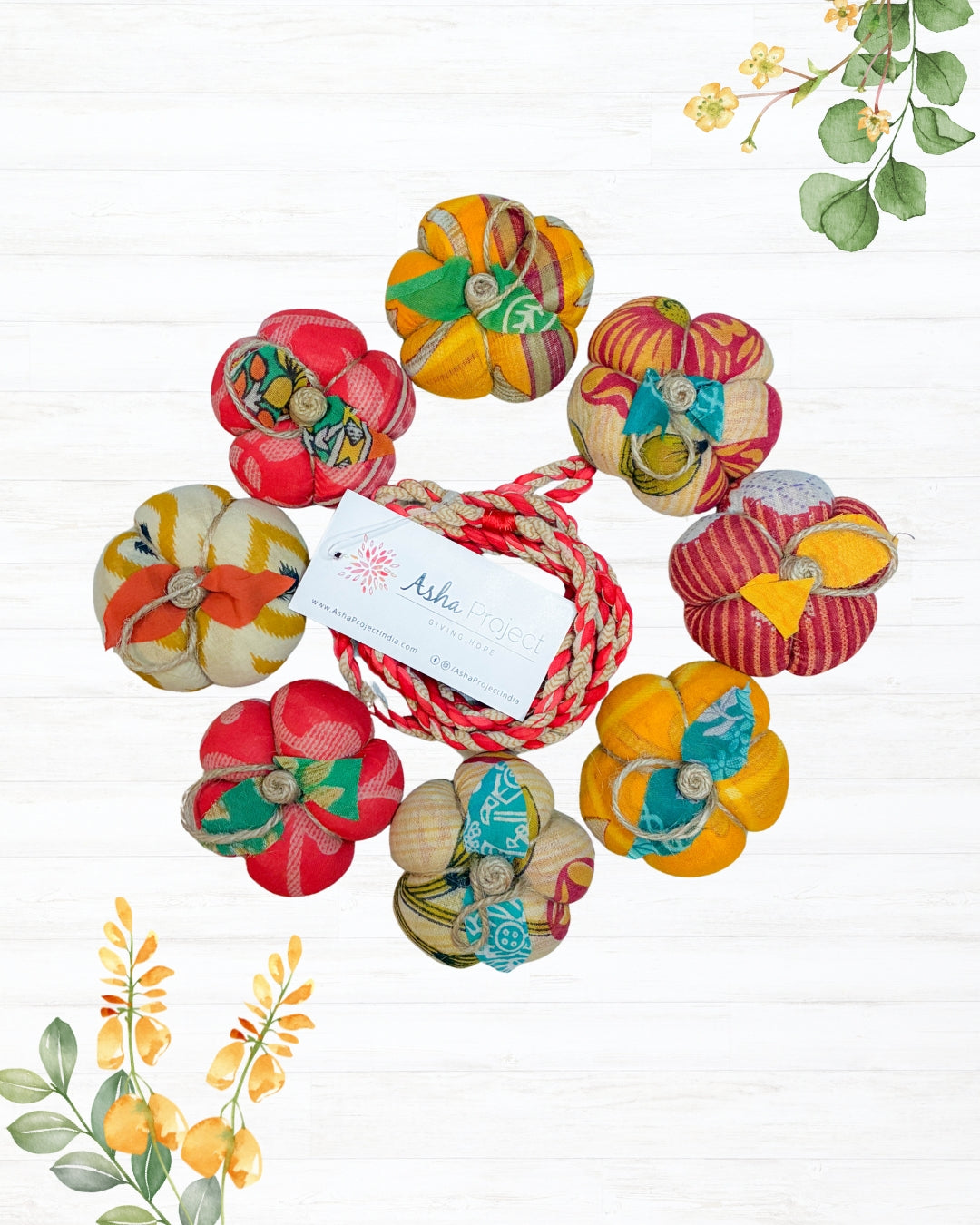 This is the cutest little pumpkin wreath you’ll have this season! Our mini pumpkins, made from recycled saree fabric, come together to create this versatile wreath. It’s ideal for hanging...