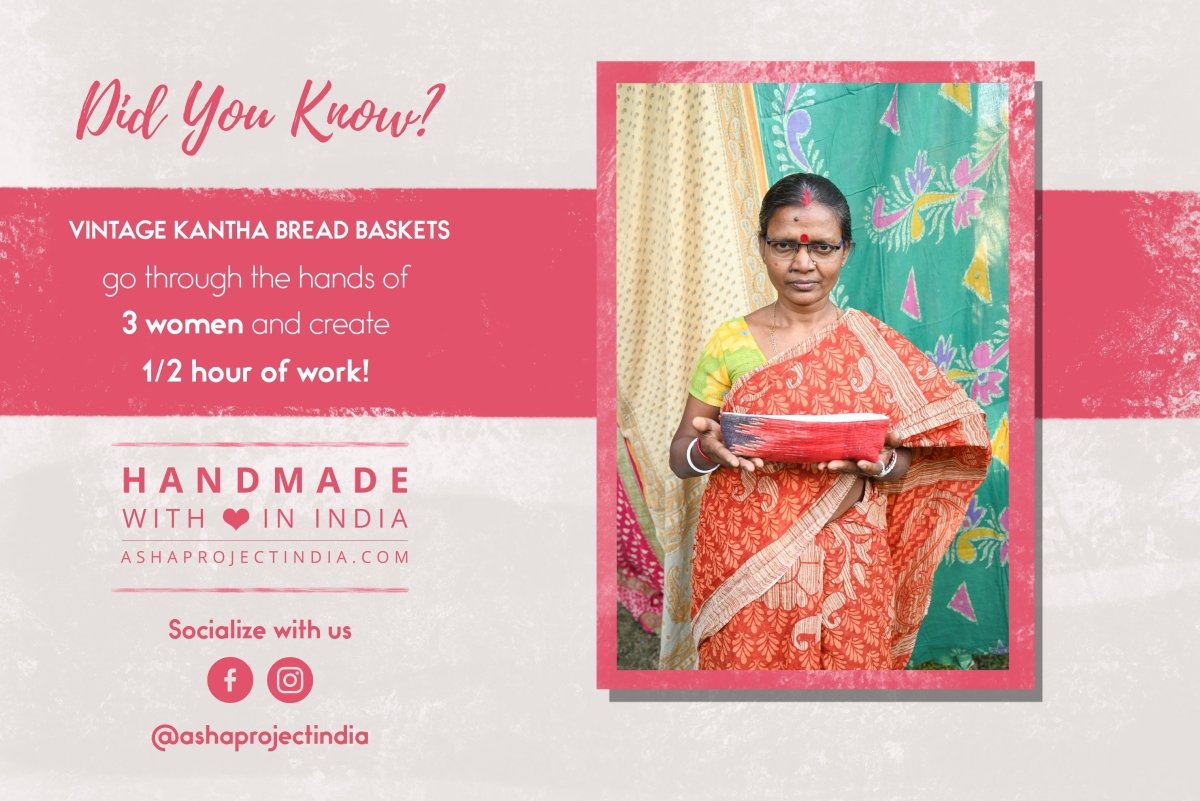 Made from once-loved Kantha blankets, these Vintage Kantha Bread Baskets bring new life to the beautiful, hand-stitched artistry of the past. Each basket is lovingly handmade from recycled fabric, with...