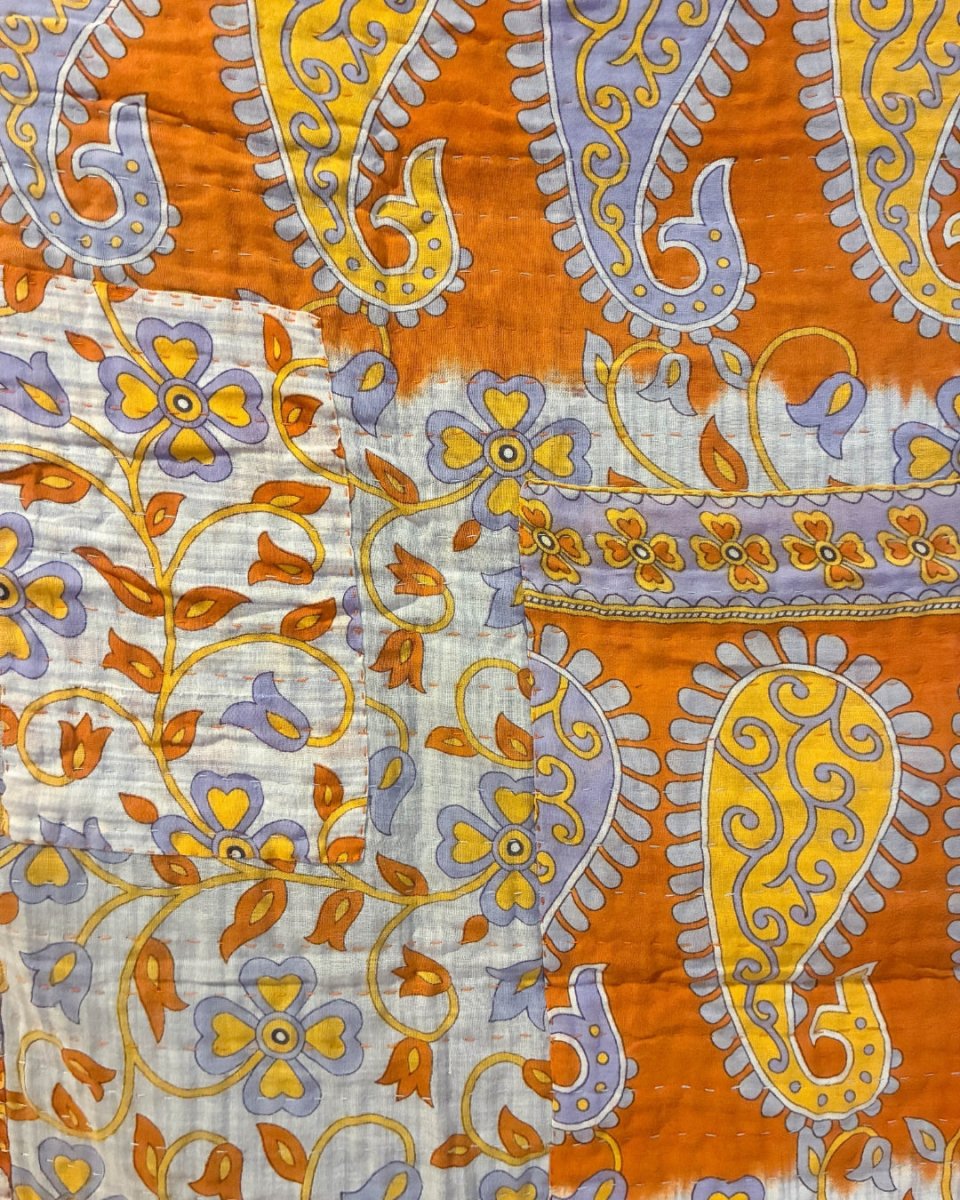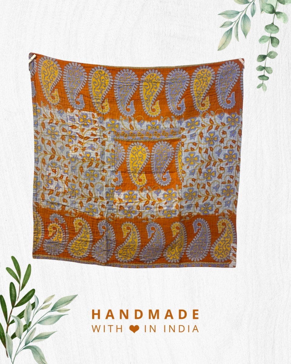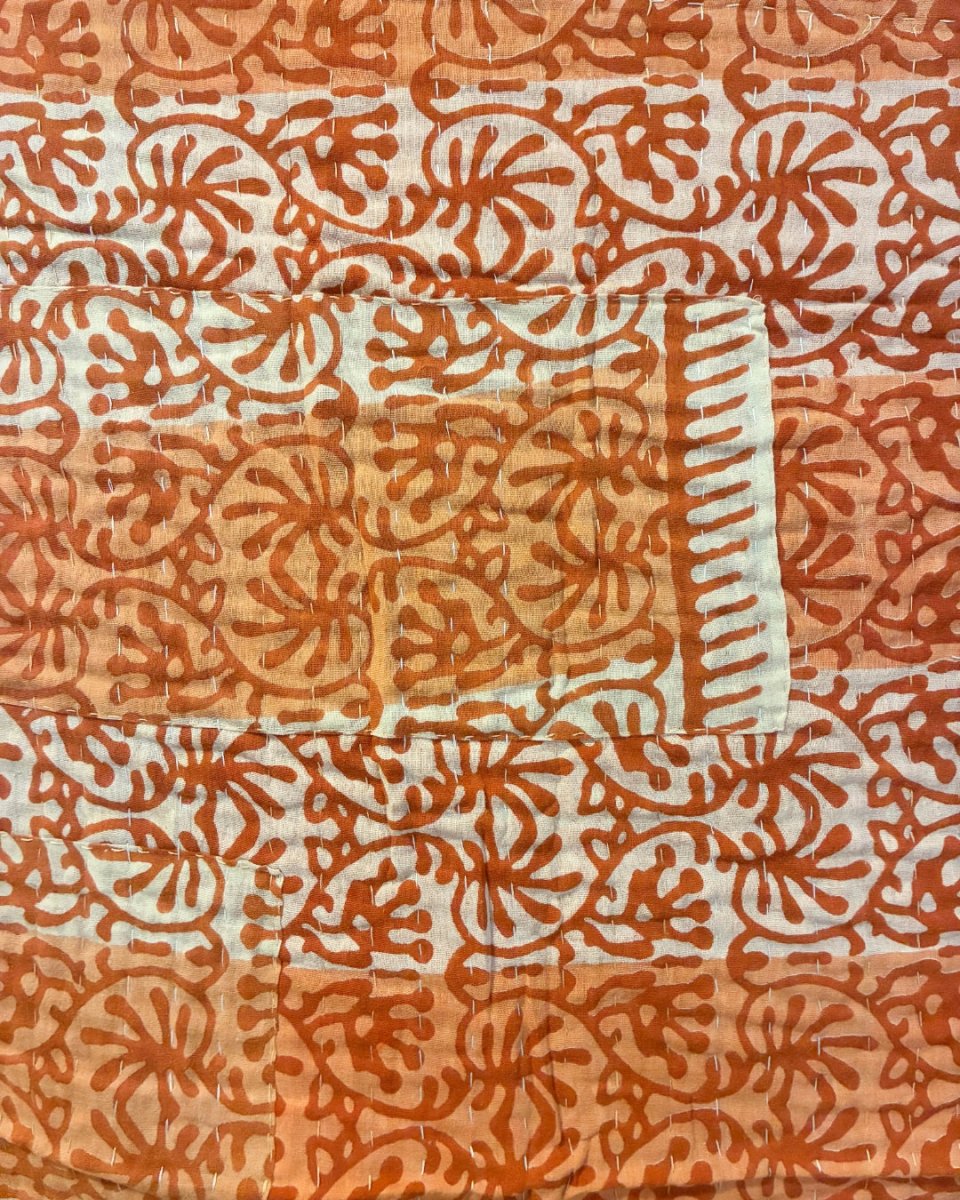 Kantha is a traditional stitch done in West Bengal where line after line of thread is stitched across the length of a recycled saree material. Our Kantha stitched blankets are...