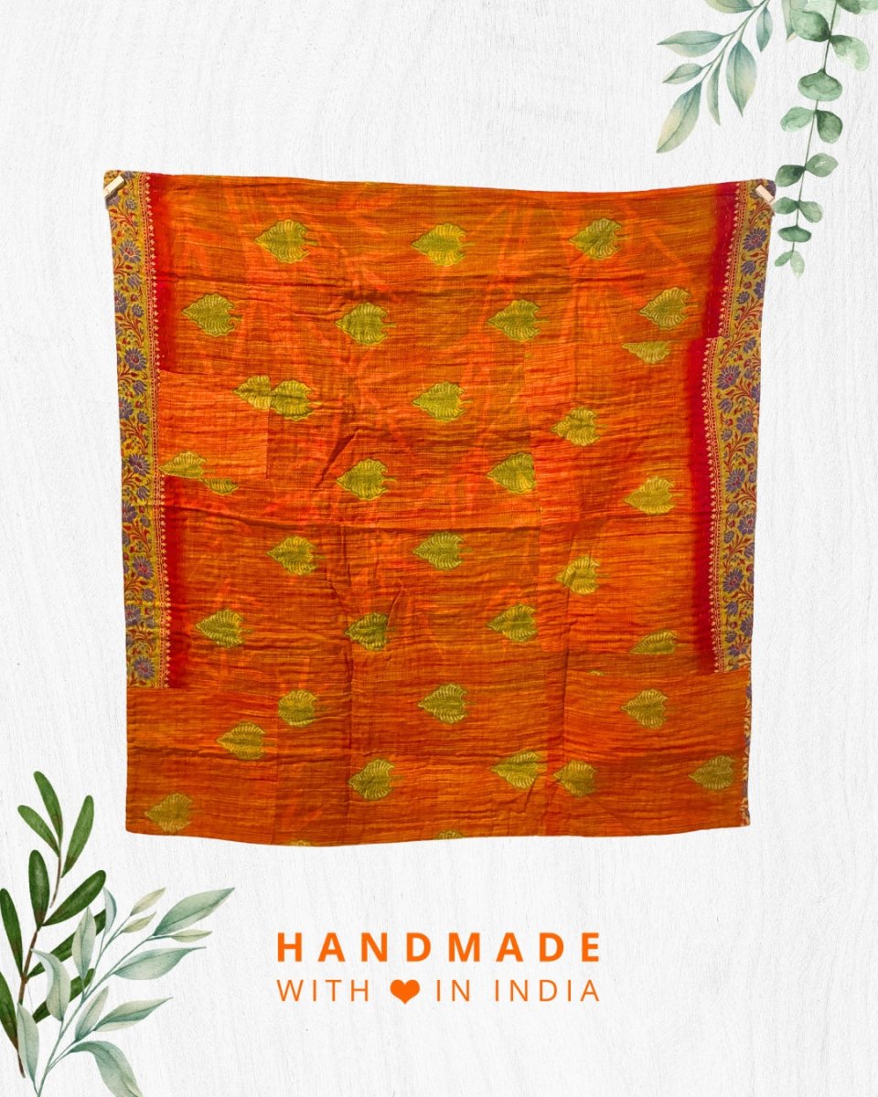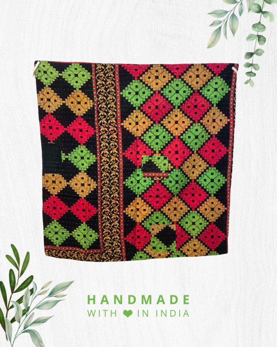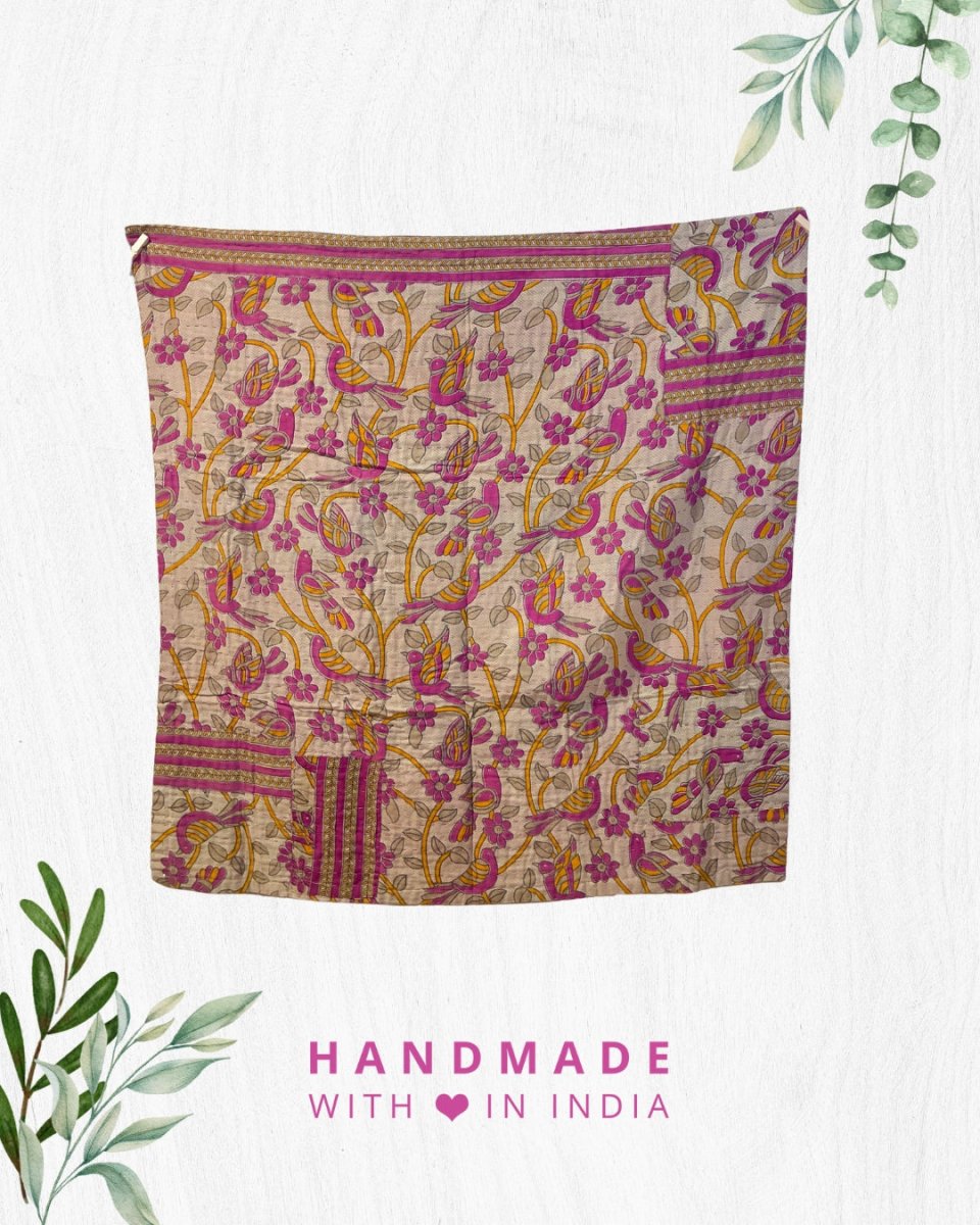 Kantha is a traditional stitch done in West Bengal where line after line of thread is stitched across the length of a recycled saree material. Our Kantha stitched blankets are...