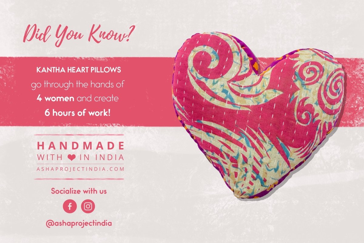 Embrace the beauty of sustainable, handmade artistry with this Kantha Heart Throw Pillow.This beautiful Kantha Heart Pillow is handmade with LOVE. This stunning piece is made from recycled saree fabrics...