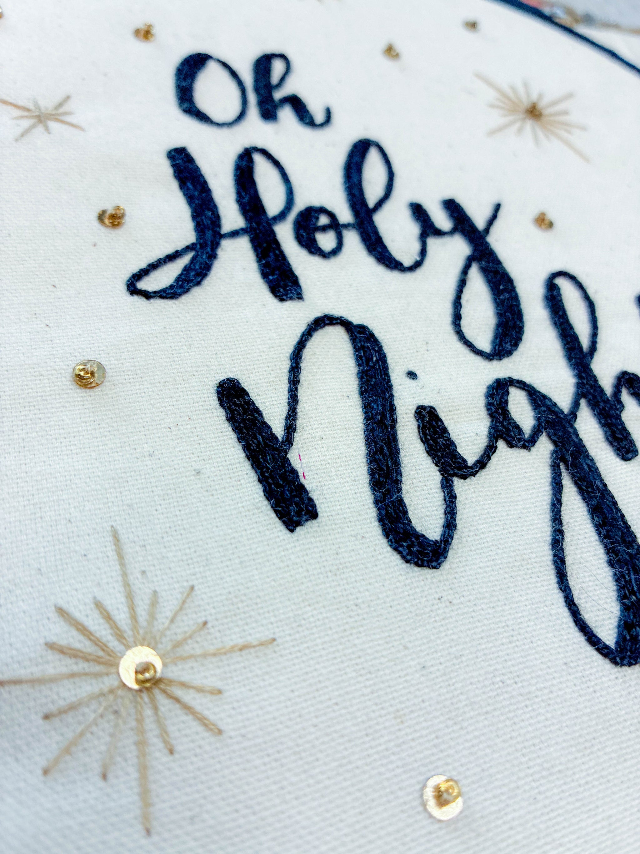"Oh holy night, the stars are brightly shining" It's a classic! This beautiful 8 inch embroidery hoop is hand embroidered on canvas with gold stars. The hoop is wrapped with...